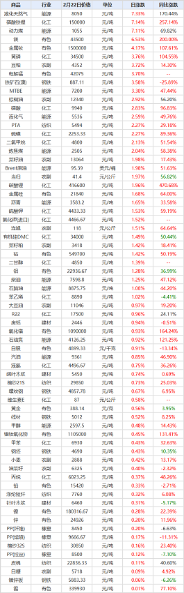 油價(jià)方面,俄烏緊張局勢(shì)引發(fā)原油市場(chǎng)供給擔(dān)憂,國(guó)際油價(jià)在周一顯著上漲,紐約原油期貨漲幅為2.90%,報(bào)92.83美元/桶;布倫特原油期貨價(jià)格漲幅為3.90%,報(bào)97.19美元/桶,為2014年9月,也就是7年多來(lái)首次。國(guó)際金價(jià)當(dāng)天變動(dòng)不大。