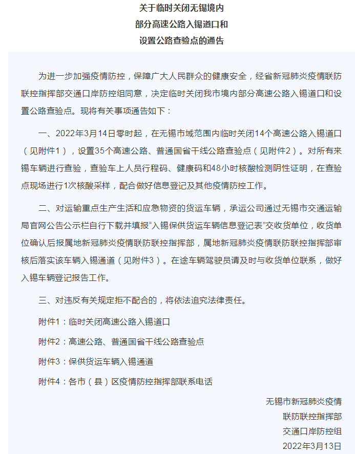 根據(jù)新冠疫情防控需要,結合高速公路通行實際情況,經(jīng)研究決定: 自2022年3月12日0時起,對南通市境內(nèi)部分高速公路收費站出入口實行臨時封閉。請廣大駕乘人員提前做好出行規(guī)劃,合理安排出行線路,服從現(xiàn)場指揮,實現(xiàn)有序通行。