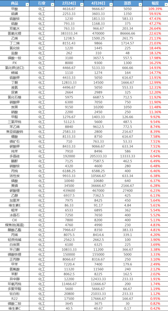 暴漲!五月開(kāi)始化工巨頭大幅漲價(jià)!