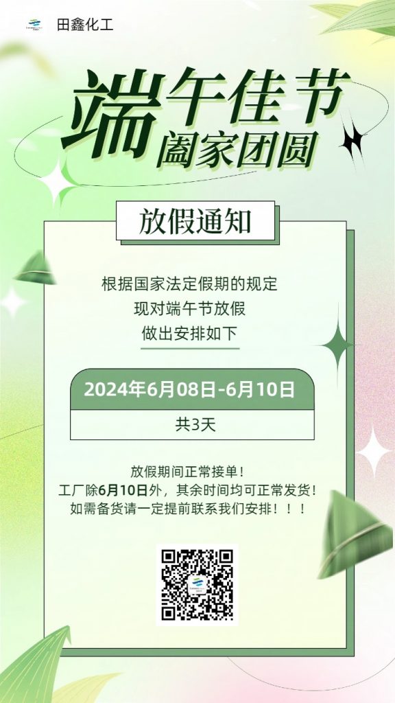 2024年端午節(jié)即將來臨,根據(jù)國家法定節(jié)假日安排及我司實(shí)際情況,具體放假時(shí)間安排如下:2024年6月8日(星期六)---2024年6月10日(星期一),共3天。